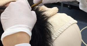 人工により 作られた毛を薄毛部 分に被せる |